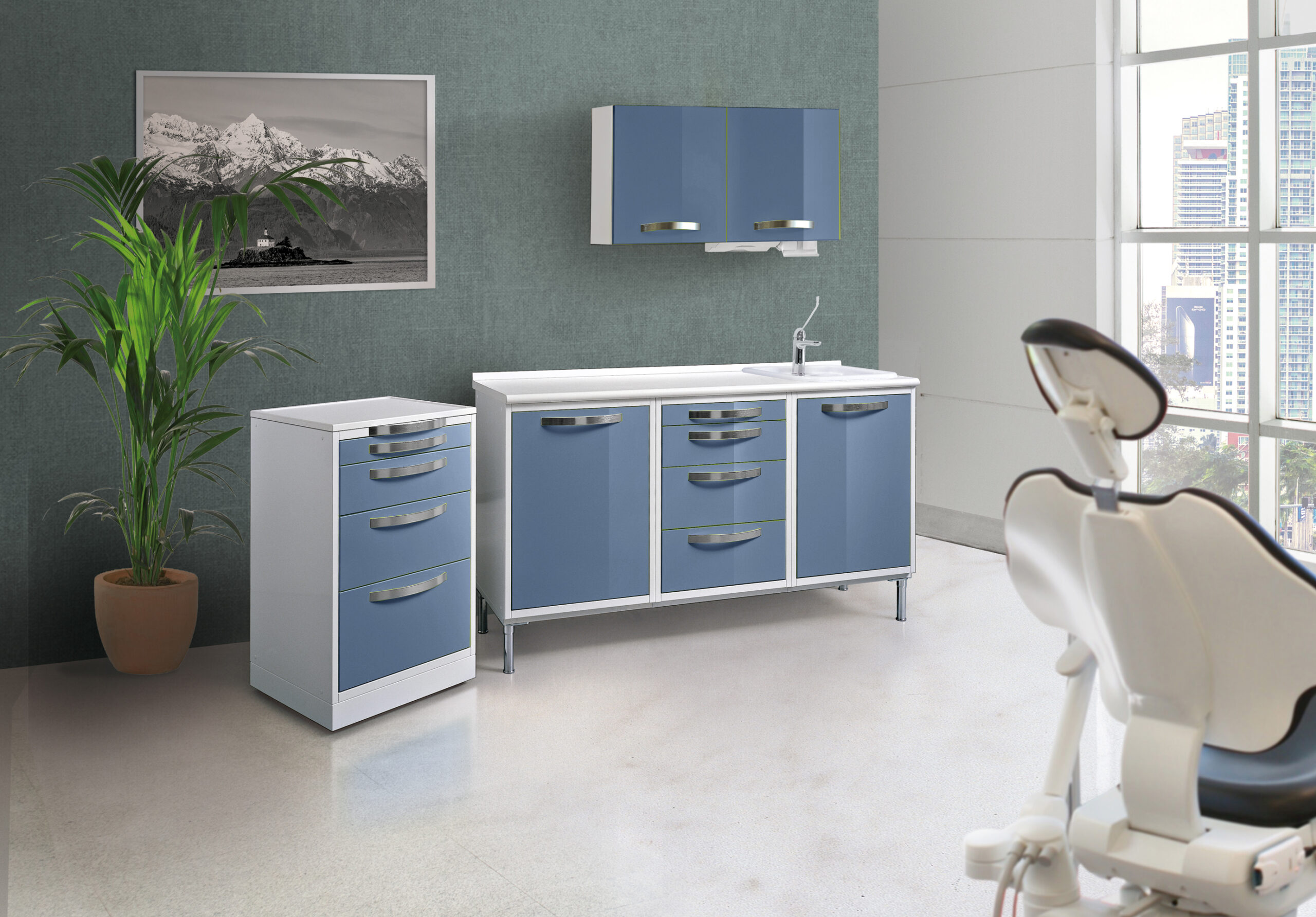 The “Team Series” is build in 10/10 electro-galvanized sheet steel. The anodized alluminium handles and the fronts of all components are enameled with epoxy powder in RAL colors. The countertops are finished in water-reppelent, scratch-resistant laminate. The drawers are mounted on guides with teflon bearings so they slide very easily, and are equipped on the inside with PVC basins available as a single unit or divided into compartiments.